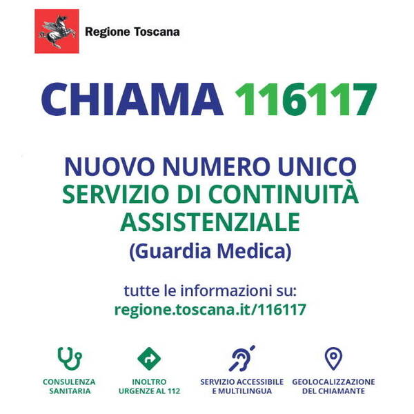 Attivo da lunedì 18 Novembre 2024, anche nella provincia di Pisa, il numero telefonico unico europeo 116117 per contattare il servizio di continuità assistenziale (Guardia medica)