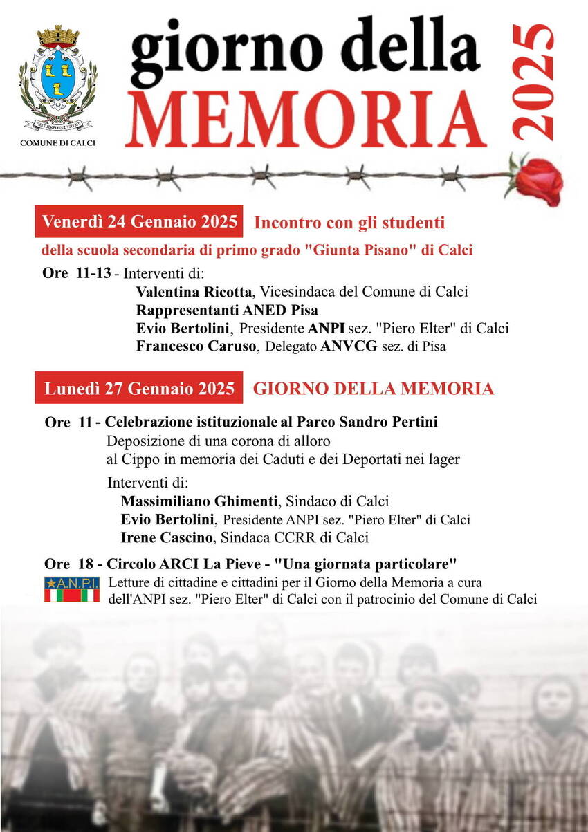 Giorno della Memoria 2025, programma delle iniziative sul territorio comunale di Calci.