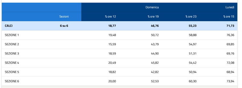 Sezione 6: Elettori: 990 | Votanti: 732 (73,94%) | Schede nulle: 2 - Schede bianche: 0 | Sì 304 voti (41,64%) | No 426 voti (58,36%)
